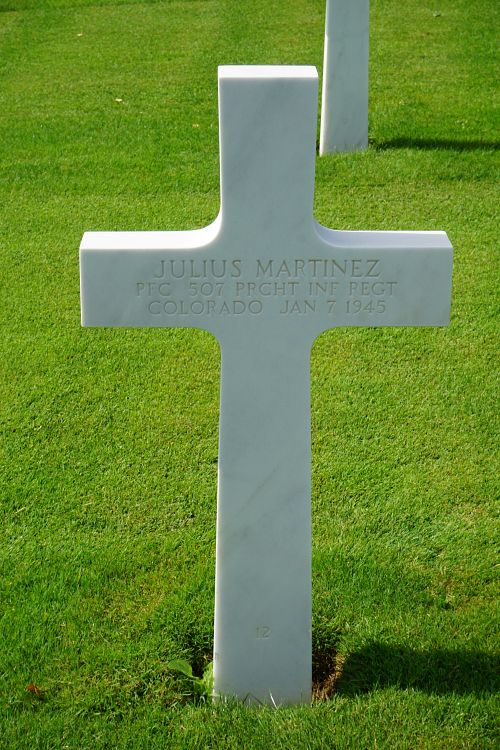 Pfc Julius Martinez worked on a farm before he enlisted in Fort Bliss El Paso, Texas on 16 June 1942.He was first buried at the Temporary American Military Cemetery in Grand-Failly, France.