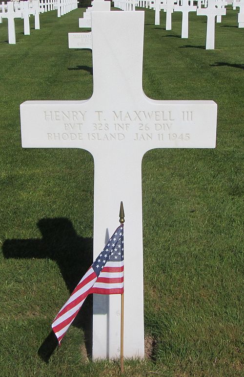 Pvt Henry T. Maxwell III attended high school for four years and was a tinsmith, coppersmith and sheet metal worker before he enlisted in Newport, Rhode Island on 21 June 1944.He was killed by artillery shell fragments attached in his skull.
