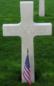 Pfc William T. McCloskey graduated from Jessup High School and attended the University of Scranton with the class of 1944.He enlisted in Wilkes-Barre, Pennsylvania on 5 April 1943 and was sent overseas in February 1944.