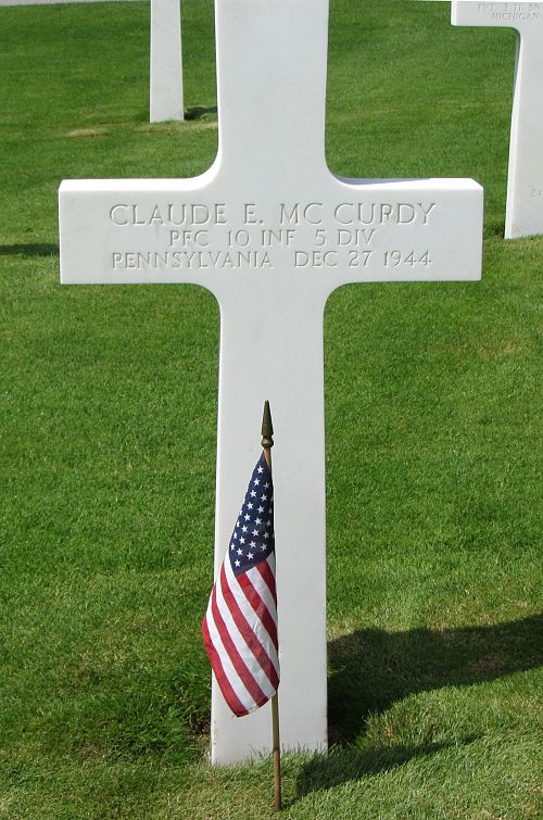 Pfc Claude E. McCurdy attended high school for four years.He enlisted in Harrisburg, Pennsylvania on 19 July 1943.