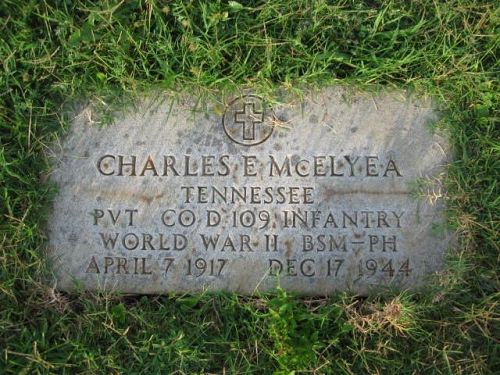 Source of information: Peter Schouteten, Terry Hirsch, www.abmc.gov, www.wwiimemorial.com, www.archives.gov - WWII Enlistment Record, www.ancestry.com - 1940 Census, https://etvma.org/veterans/charles-e-mcelyea-7803/, The Knoxville News-Sentinel 8 June 1961