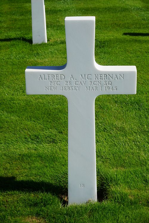 Pfc Alfred A. McKernan enlisted in Newark, New Jersey on 14 March 1941.He was killed by artillery shell fragments in his chest and neck.