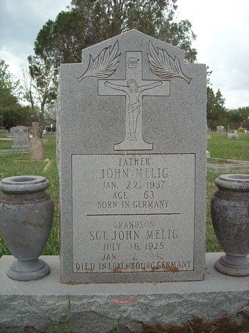 Sgt Melig is remembered at San Isidro Cemetery in Macdona, Bexar County, Texas with a memorial marker.