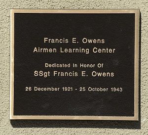 On 9 March 2012, the 381st Training Group, based at Vandenberg Air Force Base, dedicated a new Student Center building in honor of S/Sgt Francis E. "Bud" Owens. Owens was an original member of the 533rd Bomb Squadron, 381st bomb Group. In attendance at the ceremony were Sgt Owens' only surviving brother, James Owens, and immediate family members.