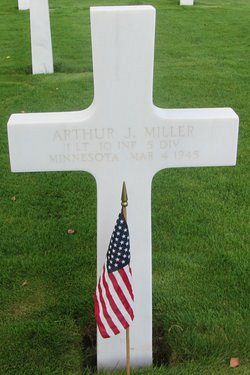 1st Lt Arthur J. Miller died in a field hospital on 4 March 1945 after being struck in the skull and chest by shell fragments two days earlier.At the time of his death, the 10th Infantry Regiment was engaged in the fighting in the vicinity of Consdorf, Germany.