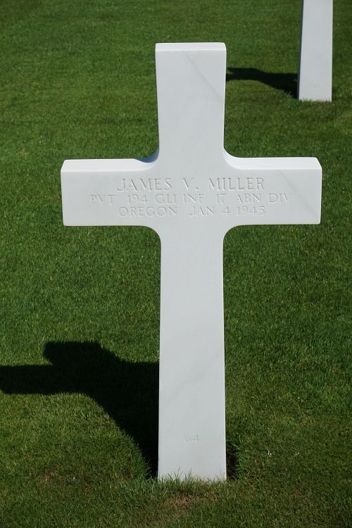 Pvt James V. Miller graduated from McKinley High School in Marshfield, Wisconsin and was employed at the Kaiser Shipyards in Portland, Oregon.