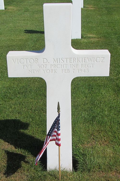 Pvt Victor D. Misterkiewicz was a welder and flame cutter before he joined the National Guard in Niagara Falls, New York on 16 September 1940.Source of information: Peter Schouteten, www.abmc.gov, www.wwiimemorial.com, www.archives.gov, www.ancestry.com - Headstone and Interment Record / Annie Family Tree / 1940 Census, www.findagrave.com – MAJ Jimmy Cotton, www.ww2-airborne.us