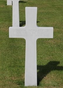 Pfc John M. Moriarty Jr. graduated from English High School and attended Boston College for one year.He volunteered for the Army of the United States at Fort Devens, Massachusetts on 29 March 1943.