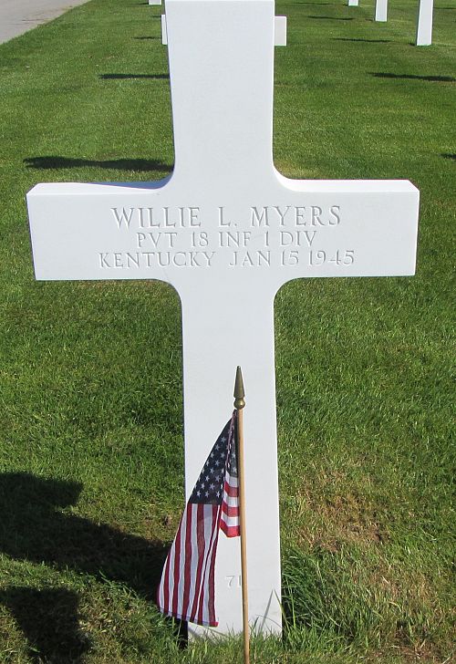 Pvt Willie L. Myers enlisted in Evansville, Indiana on 25 January 1944.Source of information: Peter Schouteten, www.abmc.gov, www.wwiimemorial.com, www.archives.gov – WWII Enlistment Record, www.ancestry.com - Headstone and Interment Record / Crider Family Tree