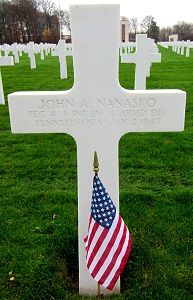 T/4 John A. Nanasko was a roofer and slater before he enlisted in Allentown, Pennsylvania on 9 September 1942.He was first buried at the Temporary American Military Cemetery in Grand Failly, France.