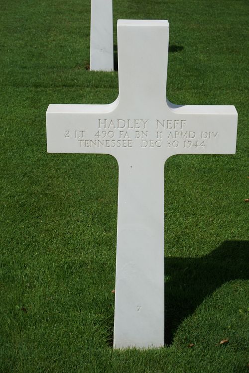 2nd Lt Hadley Neff enlisted in New York City, New York on 12 October 1942. He was killed by mortar fire.Source of information: André Koch, www.abmc.gov, www.wwiimemorial.com, www.archives.gov - WWII Enlistment Record, www.ancestry.com - 1940 Census / Jackson Family Tree / Headstone and Interment Record / U.S. WWII Draft Cards Young Men, http://www.11tharmoreddivision.com