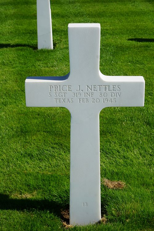 S/Sgt Price J. Nettles attended high school for three years and was a sales clerk employed by Lloyd Evans before he enlisted in Lubbock, Texas on 22 November 1940.He was killed by small arms fire in the side of his body.