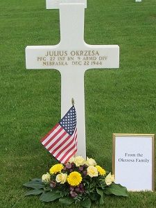 Pfc Julius Okrzesa enlisted on 2 November 1942 and trained at Fort Riley, Kansas. He was sent overseas in August 1944.Source of information: André Koch, www.abmc.gov, www.wwiimemorial.com, www.ancestry.com - 1920/1930/ Census / Headstone and Interment Records Index / U.S. WWII Draft Cards Young Men, 1940-1947, http://www.battleofthebulgememories.be