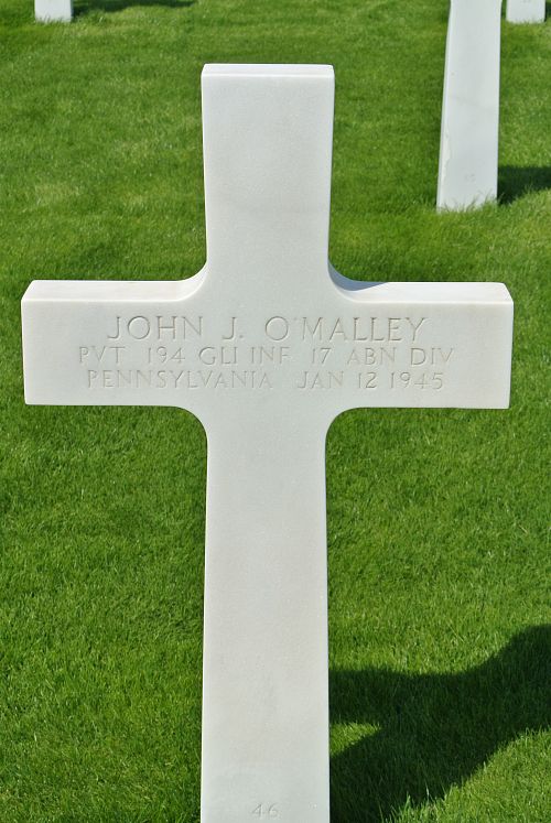 Pvt John J. O’Malley was a mechanic and repairman before he enlisted in Philadelphia, Pennsylvania on 1 April 1943.He was first buried at the Temporary American Military Cemetery of Grand Failly, France.