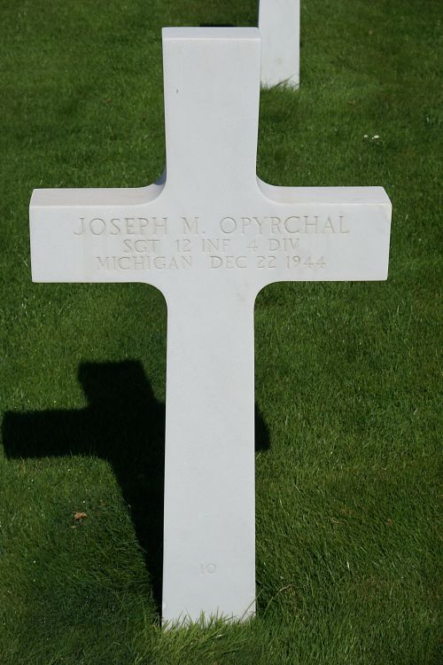 Sgt Joseph M. Opyrchal was employed at the Chrysler Corporation.He was taken prisoner of war and died of his injuries in Germany.