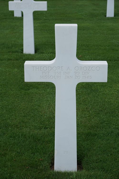 Pvt Theodore A. Orozco attended high school for 3 years and was a checker before he enlisted at Fort Leavenworth, Kansas on 15 May 1944.Source of information: Peter Schouteten, www.abmc.gov, www.wwiimemorial.com – Margaret V. Montrey, www.archives.gov – WWII Enlistment Record, www.ancestry.com - Headstone and Interment Record / Padilla Wagner Family Tree / U.S. WWII Draft Cards Young Men