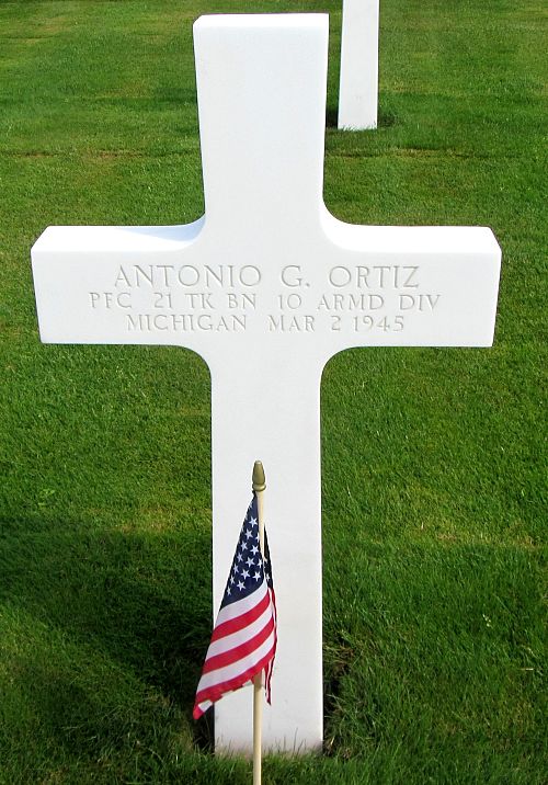 Source of information: Peter Schouteten, www.abmc.gov, www.wwiimemorial.com, www.ancestry.com - Headstone and Interment Record / U.S. WWII Draft Cards Young Men / Ortiz Family Tree, www.10tharmored.com