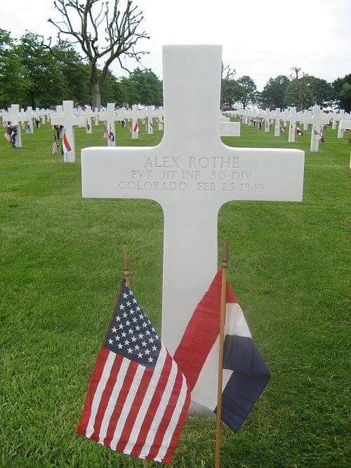 Pvt Alex Rothe enlisted in Denver, Colorado on 4 January 1944.Source of information: Tom Rothe, www.wwiimemorial.com, www.archives.gov, www.ancestry.com - Marriage Record / Headstone and Interment Record / Family Tree