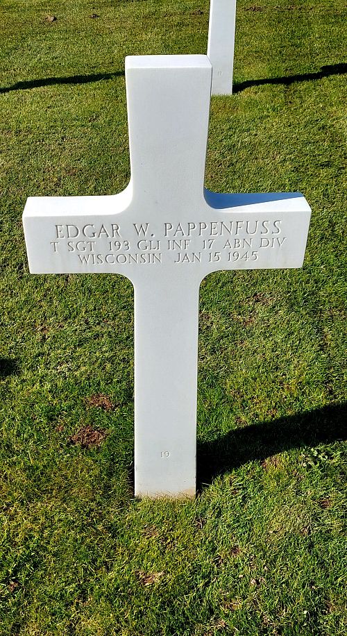 T/Sgt Edgar W. Pappenfuss joined the Regular Army in Milwaukee, Wisconsin on 2 October 1940.He was first buried at the Temporary American Military Cemetery of Grand Failly, France.