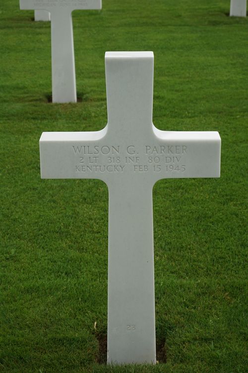 2nd Lt Wilson G. Parker had a postgraduate degree and worked as a manager, employed by the YMCA before he enlisted in Evansville, Indiana on 21 August 1943.Source of information: Leo Minne, www.abmc.gov, www.wwiimemorial.com, www.ancestry.com - Headstone and Interment Record / 1930/1940 Census / U.S. WWII Hospital Admisson Card File / U.S. WWII Draft Cards Young Men, www.80thdivision.com