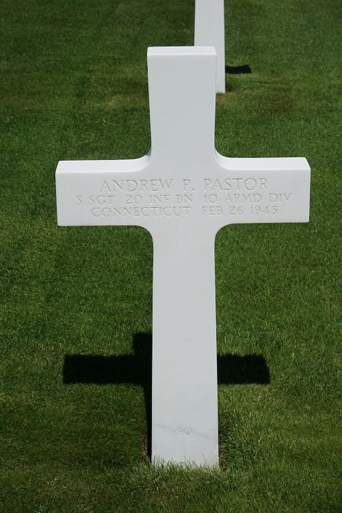 S/Sgt Andrew P. Pastor was a roofer and slater before he enlisted in Hartford, Connecticut on 9 December 1942.Source of information: Peter Schouteten, www.abmc.gov, www.wwiimemorial.com - John Pastor Jr., www.archives.gov - WWII Enlistment Record, www.ancestry.com - Headstone and Interment Record / U.S. WWII Draft Cards Young Men, www.10tharmored.com