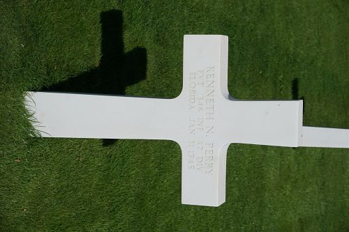 Pvt Kenneth N. Perry attended high school for four years and was a welder and flame cutter at the Colemanns machine shop before he enlisted at Camp Blanding, Florida on 13 July 1944.He died in a field hospital to the effects of a gunshot.