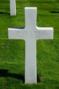 T/Sgt William C. Phillips enlisted at Fort Benjamin Harrison, Indiana on 28 January 1941. He was a veteran of the invasion of Normandy and the battle of France.He was first buried at the Temporary American Military Cemetery of Grand Failly, France.