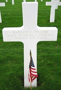 S/Sgt Harold L. Pillow was a textile weaver at the Riverside Cotton Mills before he enlisted at Camp Lee, Virginia on 23 March 1942. He was sent overseas in January 1944.He was first buried at the Temporary American Military Cemetery in Grand Failly, France.