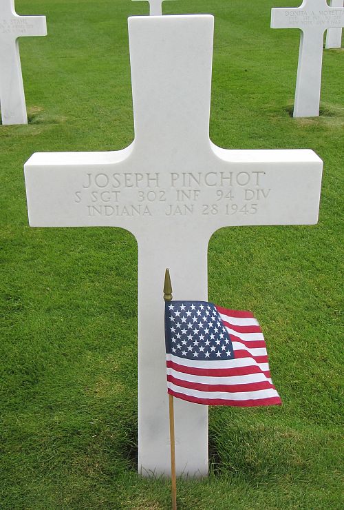 S/Sgt Joseph Pinchot graduated from Gerstmeyer Technical High School and was employed by the Quaker Maid Company before he enlisted in Evansville, Indiana on 7 December 1942. He was sent overseas in July 1944.Source of information: Peter Schouteten, Kathy McDermott, www.abmc.gov, www.wwiimemorial.com, www.archives.gov - WWII Enlistment Record, www.ancestry.com - Headstone and Interment Record / VanHook Family Tree, http://www.94thinfdiv.com, www.findagrave.com - Mark W. Neice