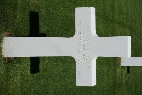 Pfc William P. Polk aworked on a ranch.He enlisted at Fort Bliss, El Paso, Texas on 21 March 1941. He was sent overseas in August 1944 and sent to France on 7 September 1944.