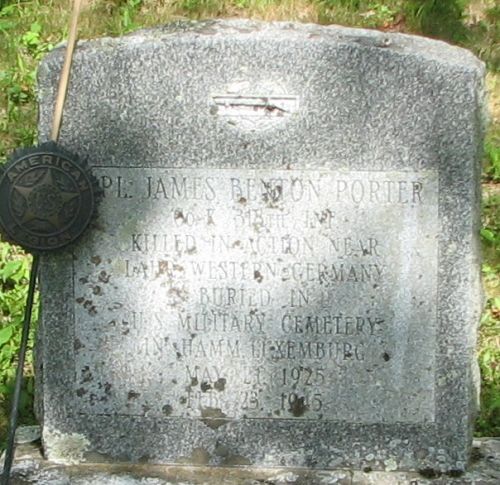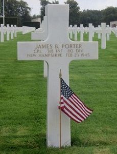 Cpl James B. Porter left Vilas High School to enlist on 10 February 1943 in Manchester, New Hampshire.He was killed by artillery shell fragments which hit him in the chest.
