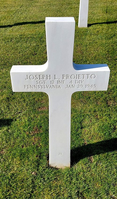 Sgt Joseph L. Proietto attended high school for two years and was a crane man before he enlisted in Allentown, Pennsylvania on 17 September 1942.Source of information: Peter Schouteten, Danny van der Groen – Company’s / 4ID After Action Reports, www.abmc.gov, www.wwiimemorial.com, www.archives.gov – WWII Enlistment Record, www.ancestry.com - Headstone and Interment Record / Denick Family Tree / U.S. WWII Draft Cards Young Men