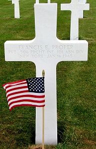 Pvt Francis E. Proper enlisted in Utica, New York on 20 February 1943.He was first buried at Temporary American Military Cemetery Grand Failly, France.