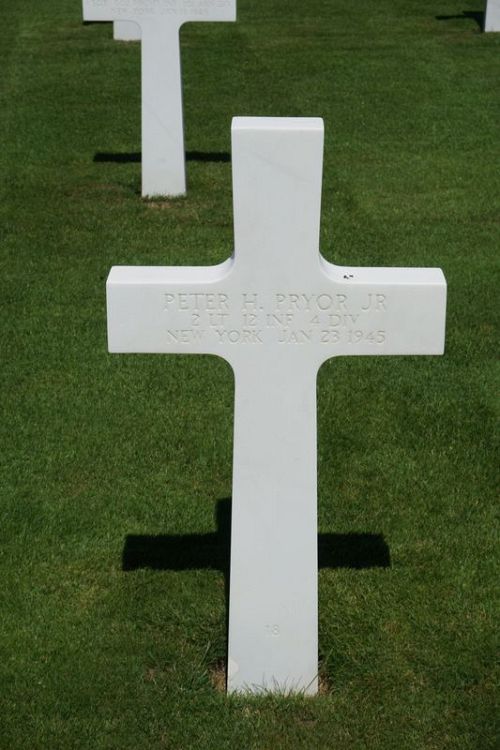2nd Lt Peter H. Pryor Jr. was a carpenter before he enlisted in Albany, New York on 8 August 1942.Source of information: Peter Schouteten, Company’s / 4ID After Action Reports, www.abmc.gov, www.wwiimemorial.com, www.archives.gov – WWII Enlistment Record, www.ancestry.com - Headstone and Interment Record / Assini Family Tree / 1925 State Census / New York State Birth Index, www.findagrave.com