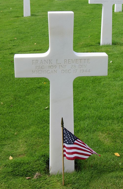 Pfc Frank L. Revette attended high school for two years and was a truck driver before he enlisted.Source of information: Peter Schouteten, www.abmc.gov, www.wwiimemorial.com, www.ancestry.com - Headstone and Interment Record / 1940 Census / U.S. WWII Draft Cards Young Men, www.findagrave.com