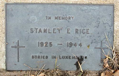 Pfc Stanley E. Rice attended high school for one year and worked on a farm before he enlisted at Fort Snelling, Minnesota on 7 May 1944.He is remembered at the Greenwood Cemetery in Bemidji, Beltrami County, Minnesota.
