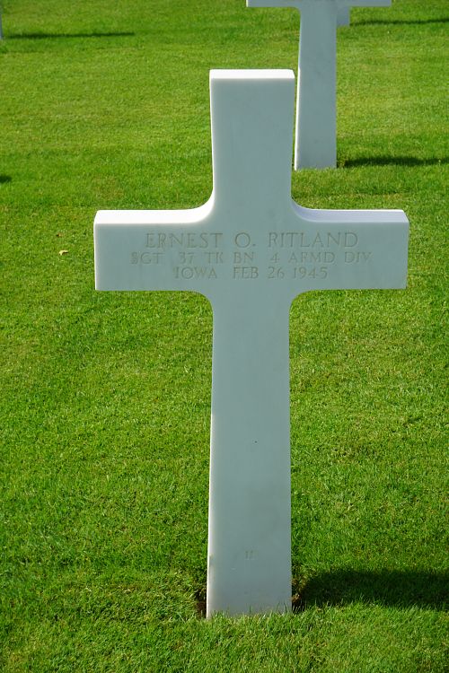 Sgt Ernest O. Ritland is remembered with a memorial marker at Zion Lutheran Church Cemetery in Garden City, Hardin County, Iowa.Source of information: André Koch, www.abmc.gov, www.wwiimemorial.com, www.ancestry.com - 1920/1930/1940 Census, Headstone and Interment Record, http://warfarehistorynetwork.com, http://cgsc.cdmhost.com/cdm/ref/collection/p4013coll8/id/3707