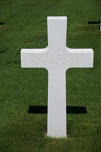 Pfc Robert L. Robinson attended high school for 3 years before he enlisted in Philadelphia, Pennsylvania on 3 July 1943.Source of information: Peter Schouteten, www.abmc.gov, www.wwiimemorial.com - Patricia C. Wilson, www.archives.gov - WWII Enlistment Record, www.ancestry.com - Headstone and Interment Record, http://94thinfdiv.com