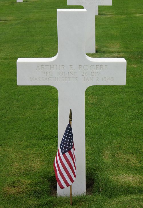 Pfc Arthur E. Rogers joined the National Guard in Boston, Massachusetts on 16 January 1941.Source of information: Peter Schouteten, www.abmc.gov, www.wwiimemorial.com, www.archives.gov - WWII Enlistment Record, www.ancestry.com - Headstone and Interment Record / 1920 Census, www.fold3.com - 26th Infantry Division