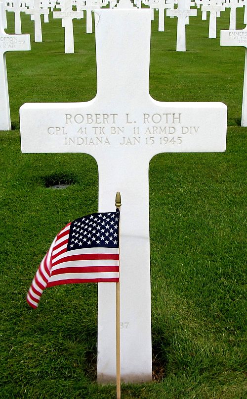 Cpl Robert L. Roth enlisted in Louisville, Kentucky on 17 October 1942.Source of information: André Koch, www.abmc.gov, www.wwiimemorial.com, www.archives.gov – WWII Enlistment Record, www.ancestry.com - 1930/1940 Census / Headstone and Interment Records / U.S. WWII Draft Cards Young Men, 1940-1947 / Indiana, Birth Certificates, 1907-1940, http://www.11tharmoreddivision.com