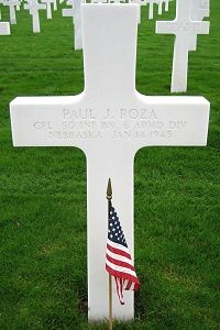 Cpl Paul J. Roza was employed at Paxton and Galagher before he enlisted in February 1943. He was sent overseas in May 1944.He was first buried at the Temporary American Military Cemetery in Grand Failly, France.