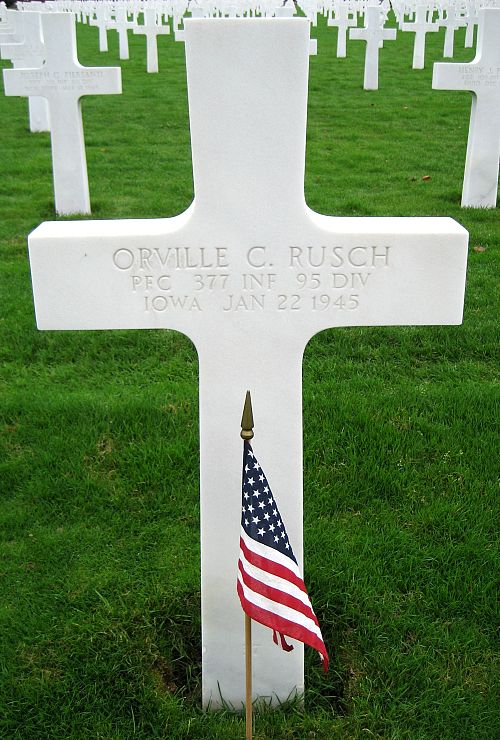 Pfc Orville C. Rusch worked for his father on the family farm.He was an assistant to the Battalion Graves Registration Officer. One of his duties was to remove deceased comrades.