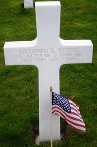 Pfc Antonio S. Russo attended high school for one year and was employed at the Weatherproof Calking Company before he enlisted at Camp Upton, New York on 17 April 1944.He died in a field hospital to the effects of artillery shell fragments.
