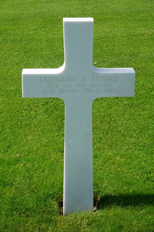 Pvt Leonard A. Russo was employed in the Aerospace Division of Continental Can Corporation.He enlisted at Fort Dix, New Jersey on 11 April 1944.