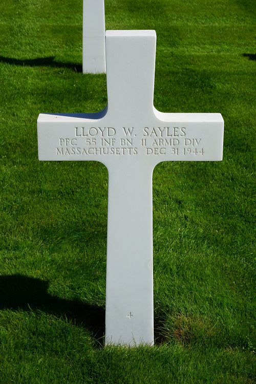 Pfc Lloyd W. Sayles enlisted in Boston, Massachusetts on 22 October 1942.Source of information: André Koch, www.abmc.gov, www.wwiimemorial.com, www.archives.gov – WWII Enlistment Record, www.ancestry.com - 1920/1930/1940 Census / Headstone and Interment Records / U.S. WWII Draft Cards Young Men, 1940-1947 / Massachusetts, Birth Index, 1901-1960 and 1967-1970, http://www.11tharmoreddivision.com