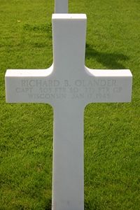 Capt Richard B. Olander graduated from William Horlick High School.He volunteered for the Air Corps of the Army of the United States on 28 January 1942 in Milwaukee, Wisconsin. He was sent overseas in April 1944.
