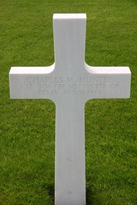 Lt Hunter was last seen circling the parachute of a Me-109 pilot he had just shot down, probably getting gun-camera proof. The exact cause why he crashed is not known. Most likely, he was shot down by another Me-109.Lt Hunter was initially buried at the cemetery in Greene, Germany.