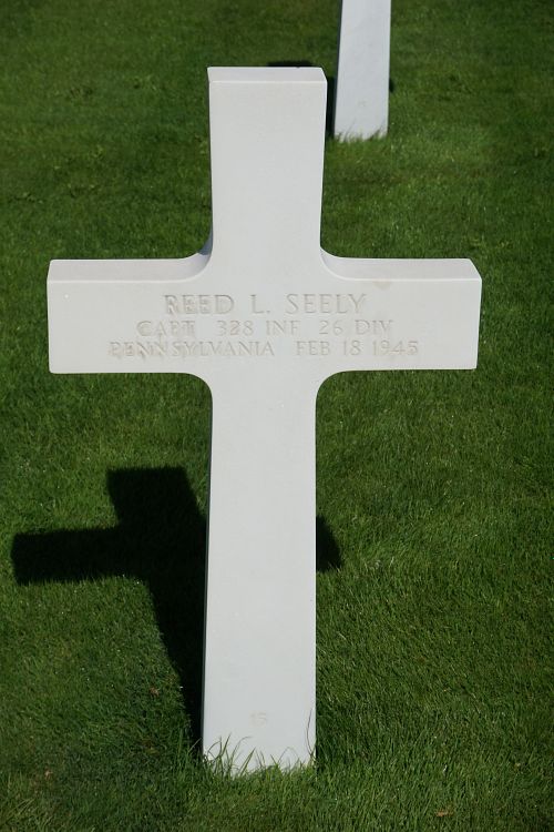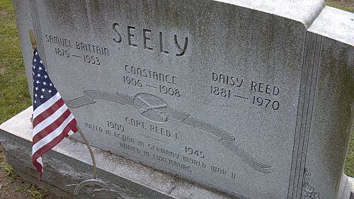 Capt Reed L. Seely was a graduate of Berwick High School and Millard School, Washington D.C.He was awarded the Silver Star Medal posthumously. The citation cited: On 17 February 1945, during fierce house-to-house fighting in Saarlouis-Roden, Germany, Capt Seely, fearlessly braving intense hostile automatic weapons and rocket fire, moved along through a heavily mined area in order to make a personnal reconnaissaince. He then led his company against bitterly defended enemy fortified positions, moving from man to man and fearlessly exposing himself to the withering enemy fire in order to direct the action of his troops. Inspired by this heroic leadership, his men moved forward and reduced the enemy positions, allowing the rest of the battalion to advance and secure its objective. Allthough Capt Seely was killed the following day by an enemy shoe-mine, his dauntless courage and supreme devotion to duty will live on as an inspiration to his men.