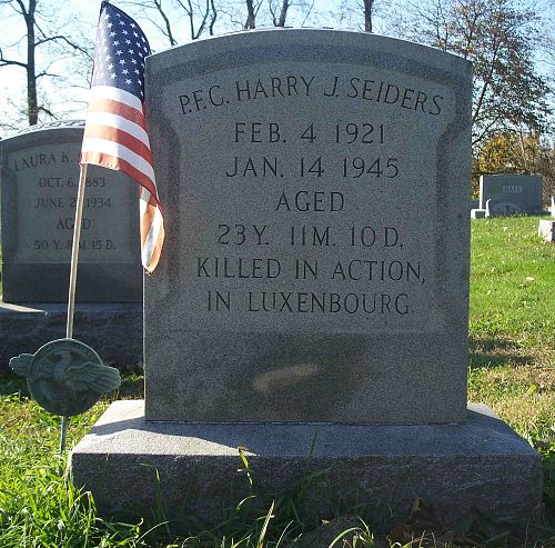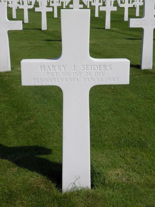 Pvt Harry J. Seiders attended Lebanon High School before he enlisted in Harrisburg, Pennsylvania on 19 November 1942. He was sent overseas in September 1943.He is also remembered at the Schaefferstown Cemetery in Schaefferstown, Lebanon County, Pennsylvania.