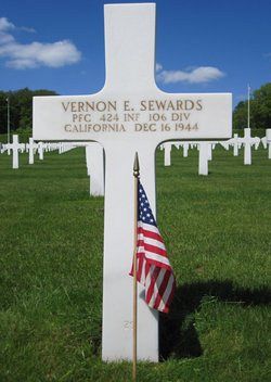 Pfc Vernon E. Sewards enlisted in Los Angeles, California, on 25 January 1943.He attended 3 years of high school and worked at Douglas Aircraft Company before he enlisted.